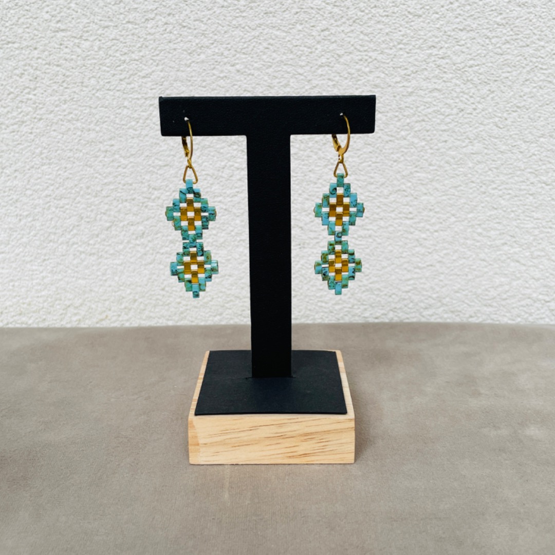 Oorbel Kaila is gemaakt met hoge kwaliteit Miyuki Tila gold plated en andere kleur Miyuki tila kralen. De oorbellen hebben stainless steel Franse oorbelhaken.